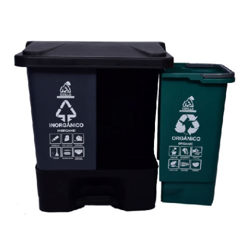 El bote con pedal doble de la marca Gorilla está elaborado de polipropileno y cuenta con los rótulos de inorgánico/reciclable/orgánico. Cuenta con división para separar la basura.