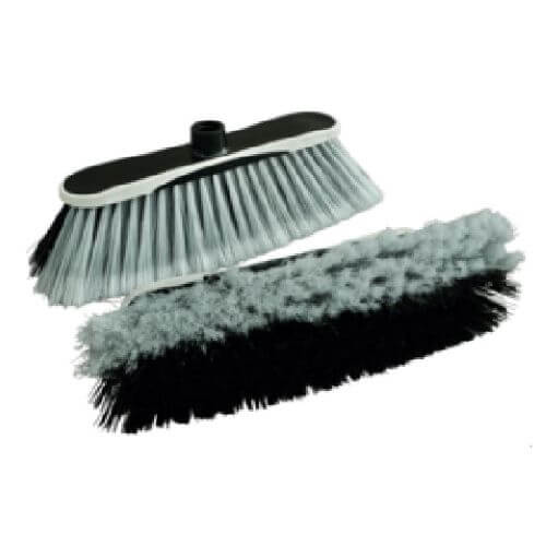 La escoba Perico interiores y exteriores P-DUAL de la marca Plásticos Italianos cuenta con una base de polipropileno negro, goma de TPE 60 y sus fibras son de PET lisa.